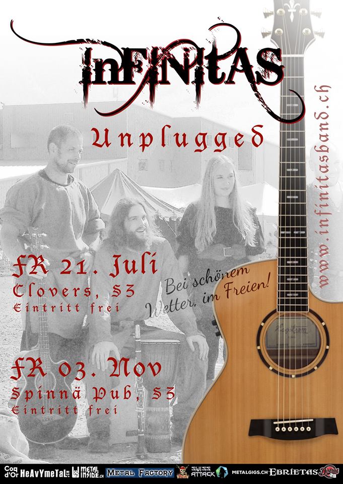Konzert Event Fr, 3. November 2017 Infinitas (Unplugged) Spinnä Pub (Goldau SZ, CH) Pressetext 18.10.2017 Infinitas Unplugged mit vielen neuen Songs von CIVITAS INTERITUS! AutorPressetext OrtSpinnä Pub (Goldau SZ, CH) BandsInfinitas GenresFolk Metal Folk Rock Pressetext 18.10.2017