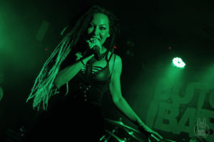 Was das Publikum nun zu hören bekommt ist eine Mischung aus Halestorm und New Years Day. Dafür verantwortlich ist der aus dem US-Bundesstaat Arizona stammende Vierer Eyes Set To Kill. Frontmädel Alexia Rodriguez beweist neben ihren gesanglichen Fähigkeiten auch Talent für den Umhang mit der Klampfe. Ähnlich wie zuvor bei Rutsy von Klogr ihr dürfte ihr Mikro jedoch ein bisschen lauter sein. Kaum denke ich an die Italiener, stehen diese plötzlich auf der Bühne und performen einen gemeinsamen Song mit ihren Kollegen aus den Staaten. Der Spassfaktor auf dieser gemeinsamen Tour scheint hoch zu sein.