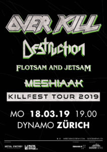 Auf kommender KILLFEST TOUR 2019 machen Overkill am Montag, 18. März 2019 auch Halt im Dynamo und werden von Destruction, Flotsam & Jetsam und Meshiaak unterstützt.