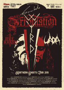 Musikalisch geht’s schliesslich um 19.30 Uhr los. Die Exoten Idle Hands eröffnen den Konzertreigen. Weshalb ich Ihnen die Aussenseiter-Karte zuschiebe? Naja, mit ihrer Mischung aus Heavy Metal und Gothic Rock passen sie eigentlich überhaupt nicht ins heutige Programm. Aufgrund dessen haben sie von Beginn weg einen schweren Stand bei der Mehrheit des Publikums. Fronter Gabriel Franco scheint dies kein bisschen zu stören. Entspannt und mit einer arschcoolen Art tätigt der Wuschelkopf seine Ansagen. Ich persönlich finde das Gezeigte ganz okay. Allenfalls sollte man die vier Amis beim nächsten Mal mit Truppen aus den gleichen Genre-Ecken auf Tour schicken. Das würde ihnen sicherlich gerechter werden.