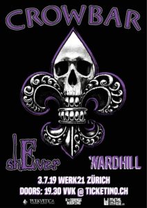 Besten Dank an die Roadrage-Booking-Crew! Neben Konzerten von Misery Index und Jungle Rot war das Gastspiel von Crowbar bereits der dritte gelungene Event, welchem ich im Werk 21 beiwohnen durfte. Da hat jemand zweifelsohne ein Händchen für interessante Truppen und Gigs. Heute Abend sich die beiden helvetischen Kapellen WardHill und shEver definitiv nicht schlecht angestellt. Was der Headliner aus dem Ami-Land im Anschluss zeigte, war dann aber schlichtweg überragend. Crowbar rules!
