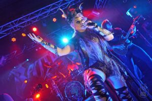 Da wir die Fakten jetzt geklärt haben, können wir zum Kapitel ‘Auftritt’ vordringen. Dieser Band ist ihr junges Alter kaum anzumerken. Alles wirkt sehr routiniert und wie beim Hauptact steht auch jetzt der Spass im Vordergrund. Heute sowieso, ist es doch der letzte Tourtag von Cyhra. Dies veranlasst Battle Beast dazu, den Auftritt zu stören, indem sie in Unterwäsche auf die Bühne stürmen. Zweifelsohne haben die beiden Kapellen auf Tour eine gute Zeit gehabt, und wollen dies auch dem Schweizer Publikum zeigen.