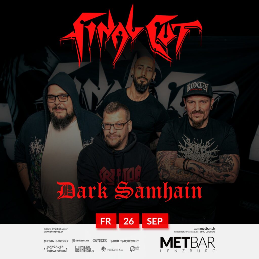 Eigentlich stand die heutige Fete zuerst auf der Kippe, denn die ursprünglich eingeplanten Odium mussten rund einen Monat vor dem Event aufgrund der Erkrankung eines Bandmitglieds absagen (nachträglich gute Genesungswünsche an dieser Stelle). Glücklicherweise war die fieberhafte Suche der Met-Bar Crew nach einem Ersatz von Erfolg gekrönt. Deshalb werden nun die Lokalhelden von Final Cut die kleine Bühne zum Beben bringen! Davor gibt es allerdings ein Aufwärmprogramm mit den schwermetallischen Veteranen Dark Samhain (basierend auf diesem Begriff stelle ich fest, dass das gleichnamige, keltische Winterfest in diesem Jahr für uns anwesende Zuhörer bereits Ende September stattfinden).