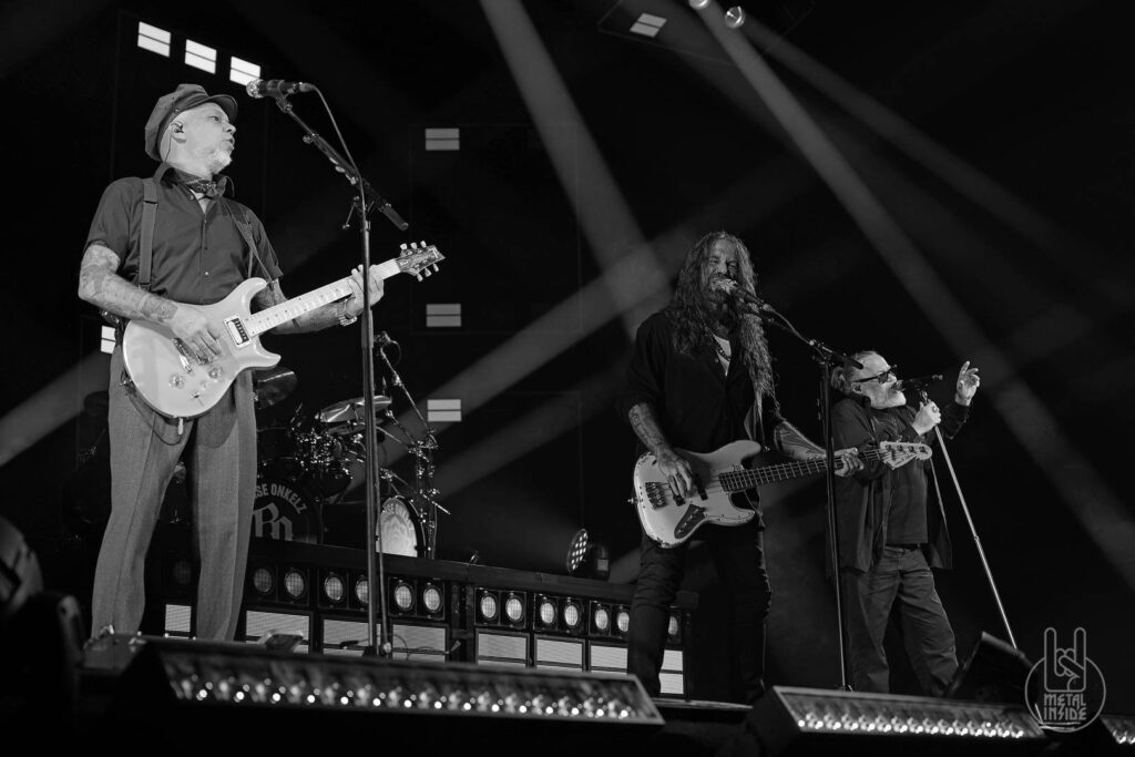 Der Sound ist perfekt. Sehr cool, wie man mit einer Gitarre und starkem Bassspiel so viel Druck in die Halle kriegt. Gleich beim ersten Song ist meine etwas provokative Frage, ob es die Onkelz live noch bringen mit einem fetten Ja beantwortet. Selbst Kevin, bei ihm hatte ich das grösste Fragezeichen, singt ganz ordentlich. Sogar so ordentlich, dass Stephan ihn, wie früher auch schon, nicht die ganze Zeit beim Gesang unterstützt, sondern mehrheitlich nur bei den Refrains mitsingt.