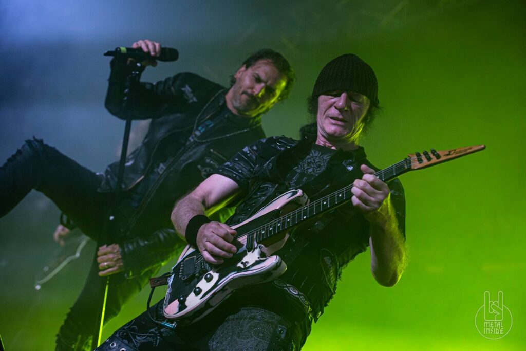 Aber zurück auf die Bühne. Die Sänger-Abteilung drückt sich abwechslungsweise die Klinke in die Hand. Es gibt aber auch Nummern, welche im Verbund vorgetragen werden. «Venom» von Martina und Dyan vermag mir beispielsweise zu gefallen. Oder das ebenfalls von diesem Duo dargebotene «Falling To Pieces» (welches von der Riff-Arbeit her fraglos an ein gewisses «Ballhog Zone» erinnert). Stets überschwänglichen Applaus erntet selbstverständlich «unser» Gianni. Victory-Lieder der Marke «Temples Of Gold» sind logischerweise seine Aufgaben. Er meistert diese gekonnt und fehlerfrei. Aber bitte nicht zu sehr verausgaben, denn schliesslich muss er morgen nochmals mit The Order auf dieser «Spielwiese» ran. Die intensivsten Jubelstürme lösen derweil erwartungsgemäss die Accept-Klassiker aus. «Balls To The Wall» wird effektiv von der gesamten Gruppe vorgetragen und wird somit zum grossen Ausrufezeichen! Um 00.35 Uhr beendet der Headliner mit «Check‘s In The Mail» seine überzeugende Performance und entlässt die Hörerschaft in die Nacht.
